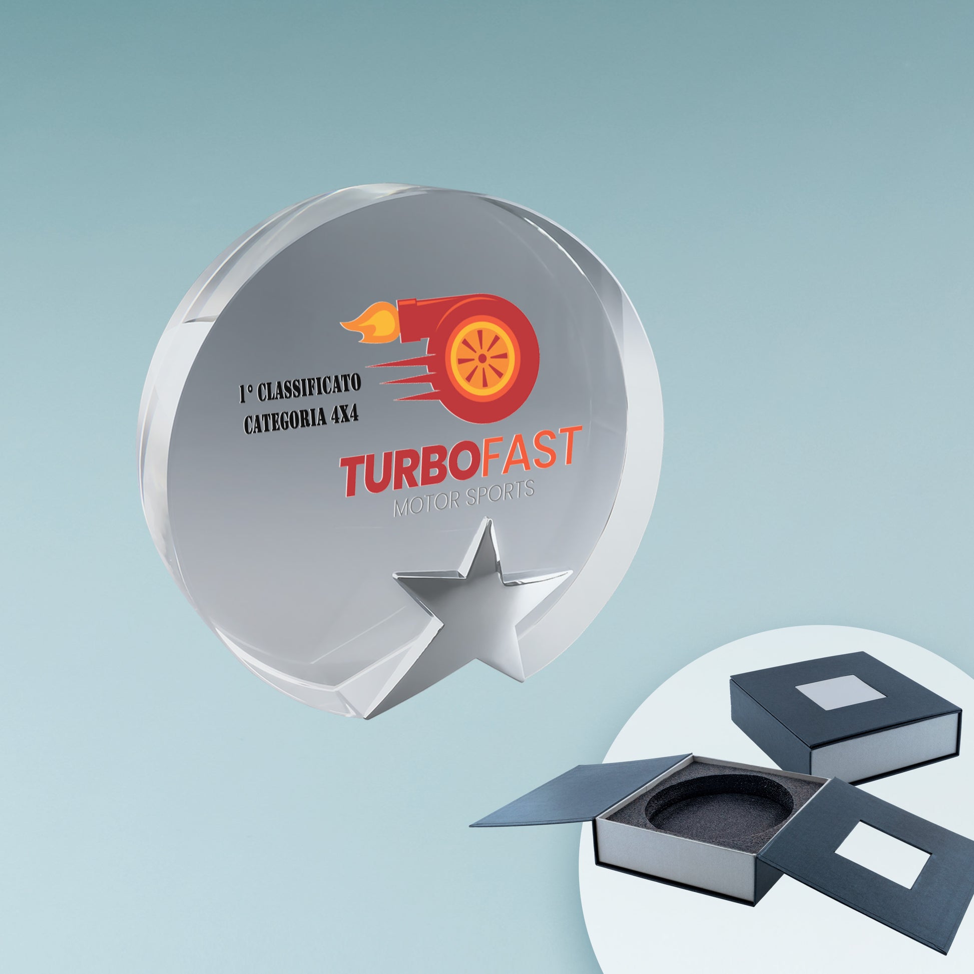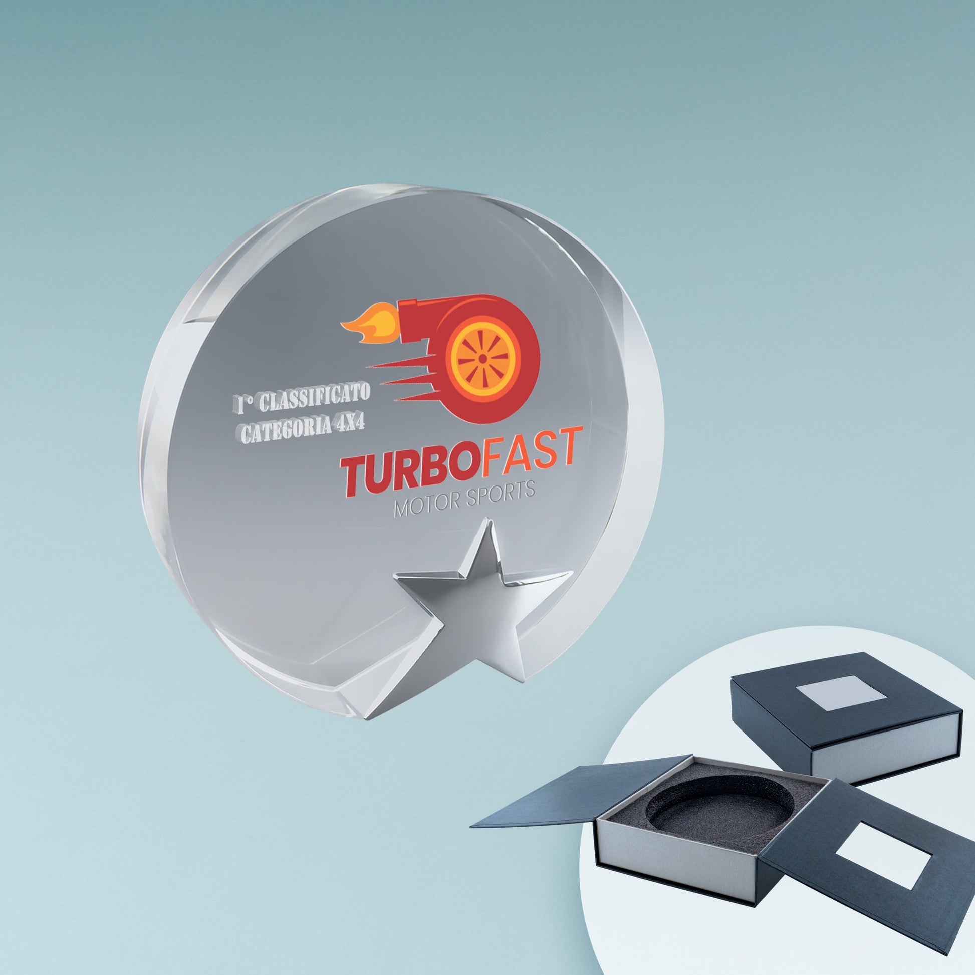 personalizzata prima ancora della produzione. Per usufruire di questo servizio, basta compilare il modulo disponibile sul nostro sito web e allegare il tuo logo. I nostri esperti di progettazione ti forniranno una bozza digitale dettagliata del tuo trofeo, consentendoti di vedere il risultato finale prima di confermare l'ordine.